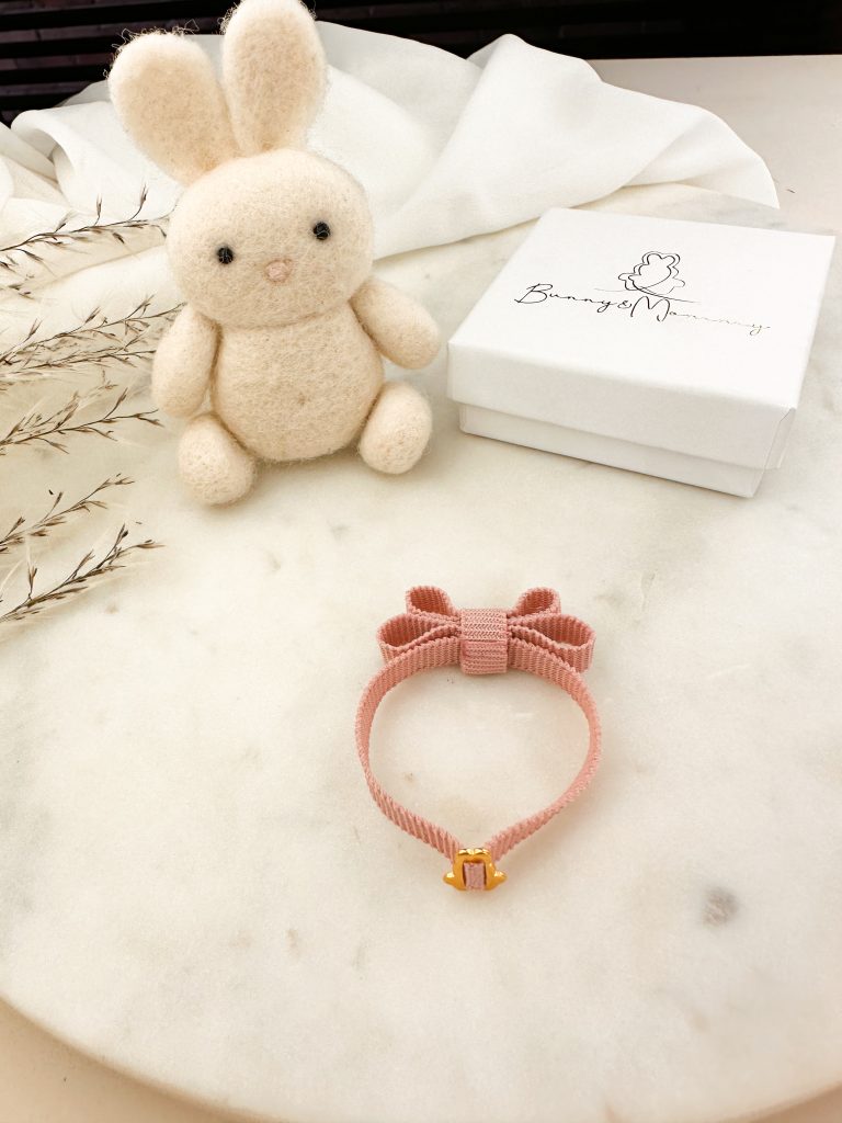 Subtelna bransoletka elastyczna w wersji z kokardką lub bez. Bransoletka stanowi piękną pamiątkę zarówno dla małych dzieci, jak i tych całkiem dorosłych. Subtelny detal w formie króliczkowej przekładki dodaje uroku i niepowtarzalności biżuterii #BUNNYANDMOMMY. Pełna personalizacja biżuterii pozwala dobrać odpowiedni rozmiar, kolor oraz wersję bransoletki. Bransoletka wykonana z elastycznej wstążeczki w dziewięciu wariantach kolorystycznych w wersji z kokardką lub bez. Zapakowana z dbałością o każdy szczegół bransoletka tworzy z całości wyjątkowy, niepowtarzalny prezent.
