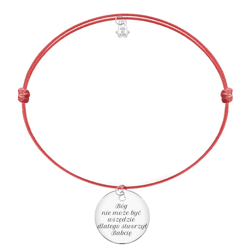 Bransoletka sznurkowa z kolekcji #BABCIA z ujmującym cytatem na przodzie zawieszki, na odwrocie wygrawerujemy imię, imiona, daty, inicjały bądź dowolną Twoją sentencję. Bransoletka doskonale sprawdzi się jako prezent dla każdej babci.