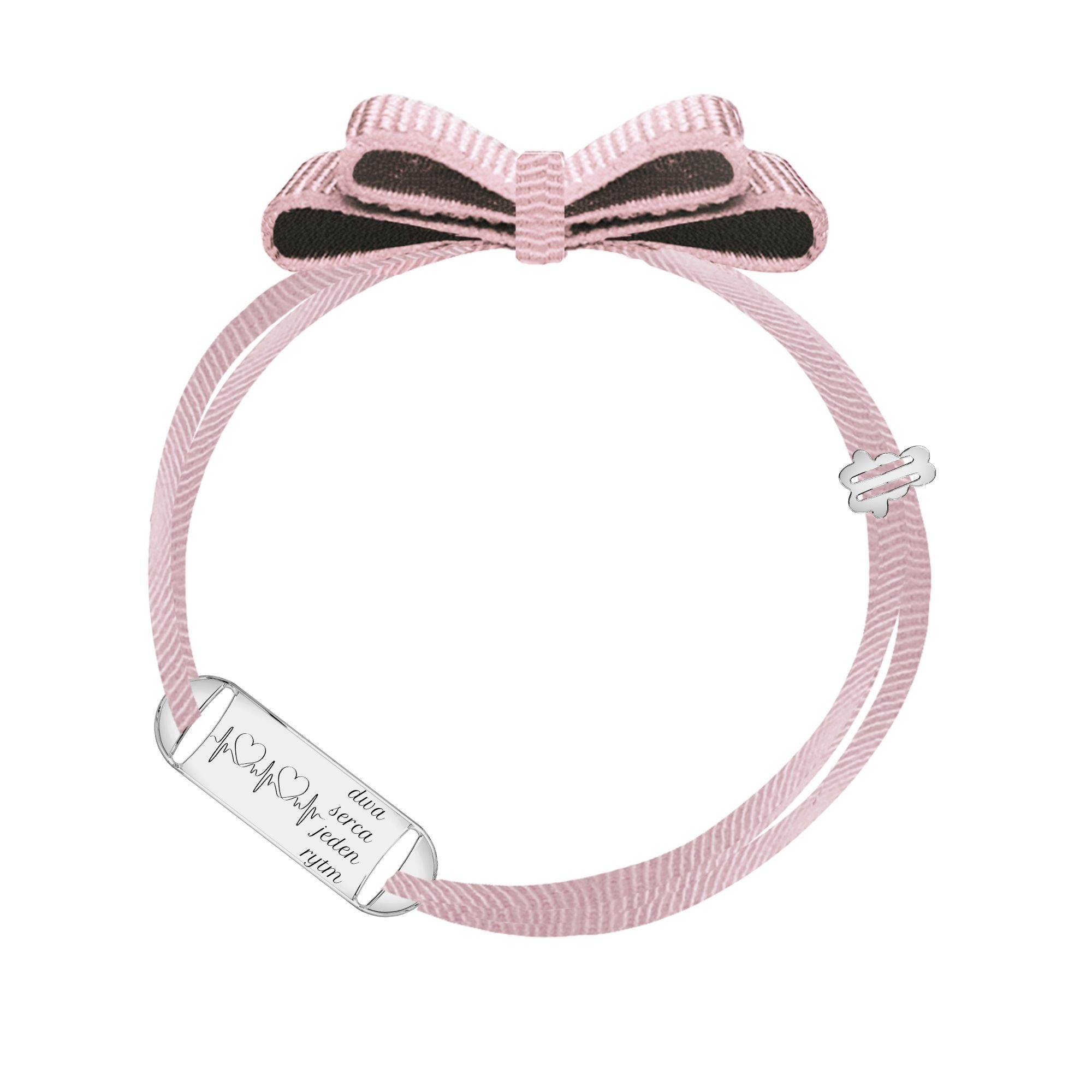 Bransoletka na wstążce z przylegającą zawieszką z dwoma grafikami oneline puls z serduszkiem dwa serca jeden rytm w oczekiwaniu na bliźnięta