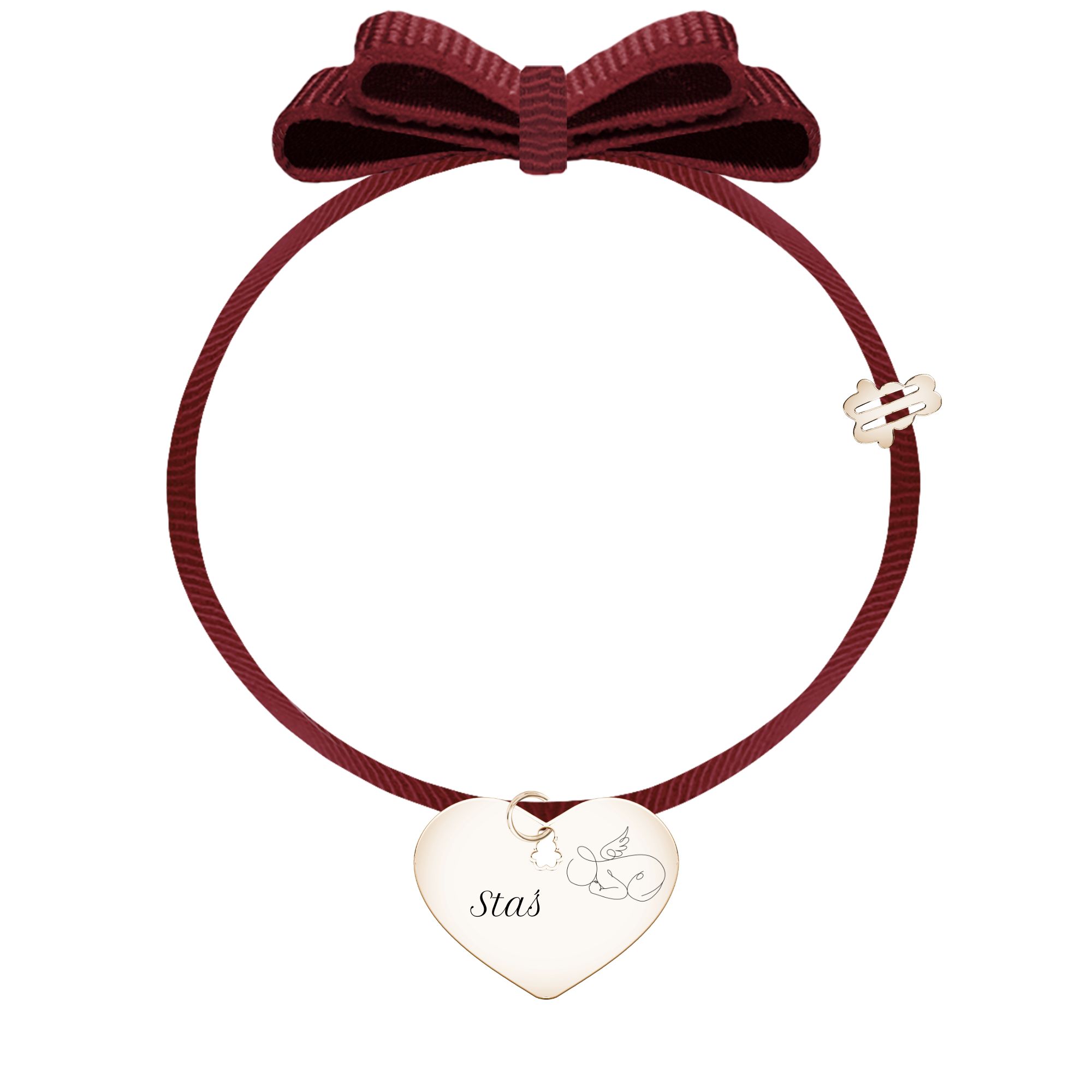Bransoletka na wstążce z wiszącym sercem z grafiką aniołka oneline i imieniem dziecka utraconego