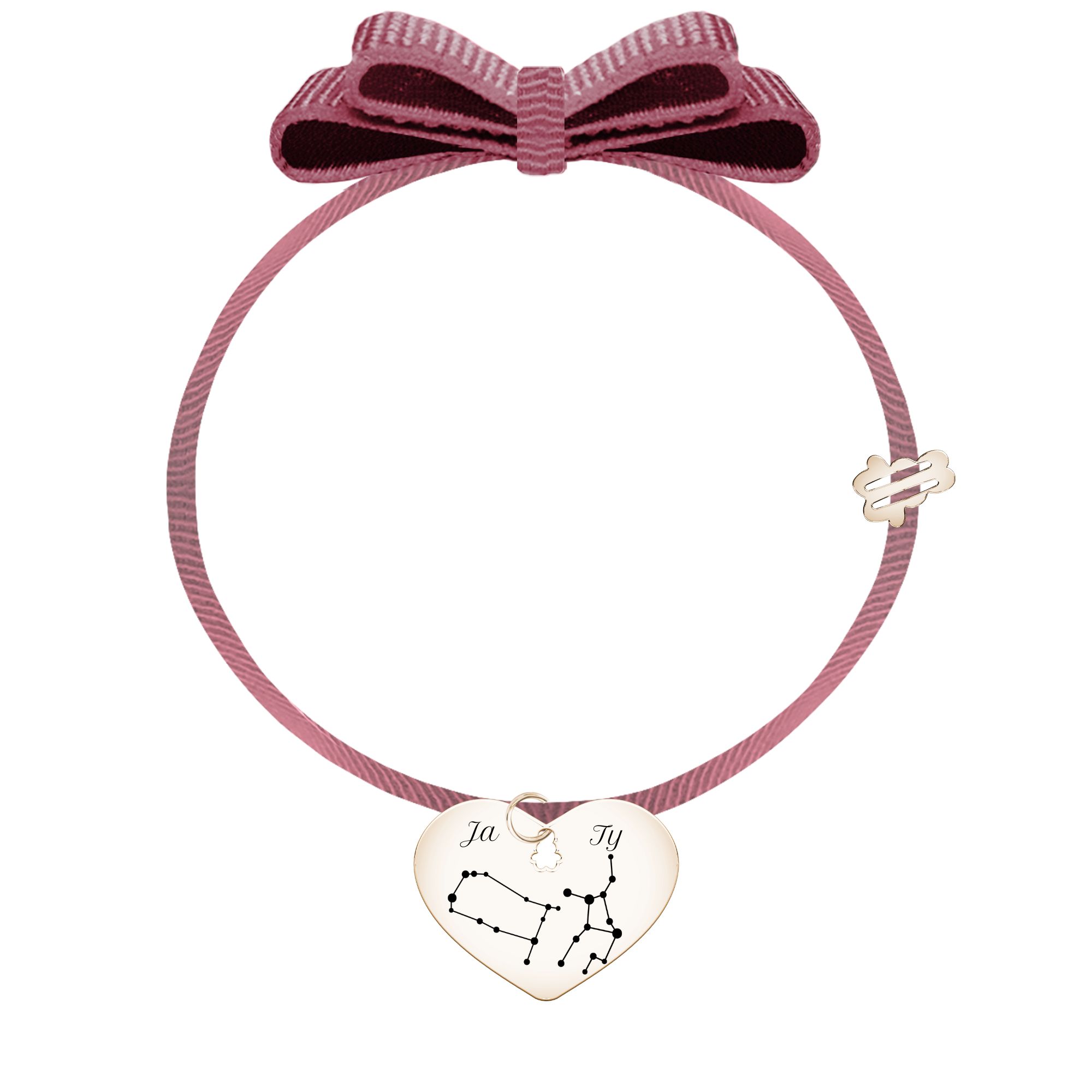 Bransoletka na wstążce z zawieszką serce Ja i Ty z konstelacjami gwiazd Twojego znaku zodiaku oraz bliskiej Ci osoby