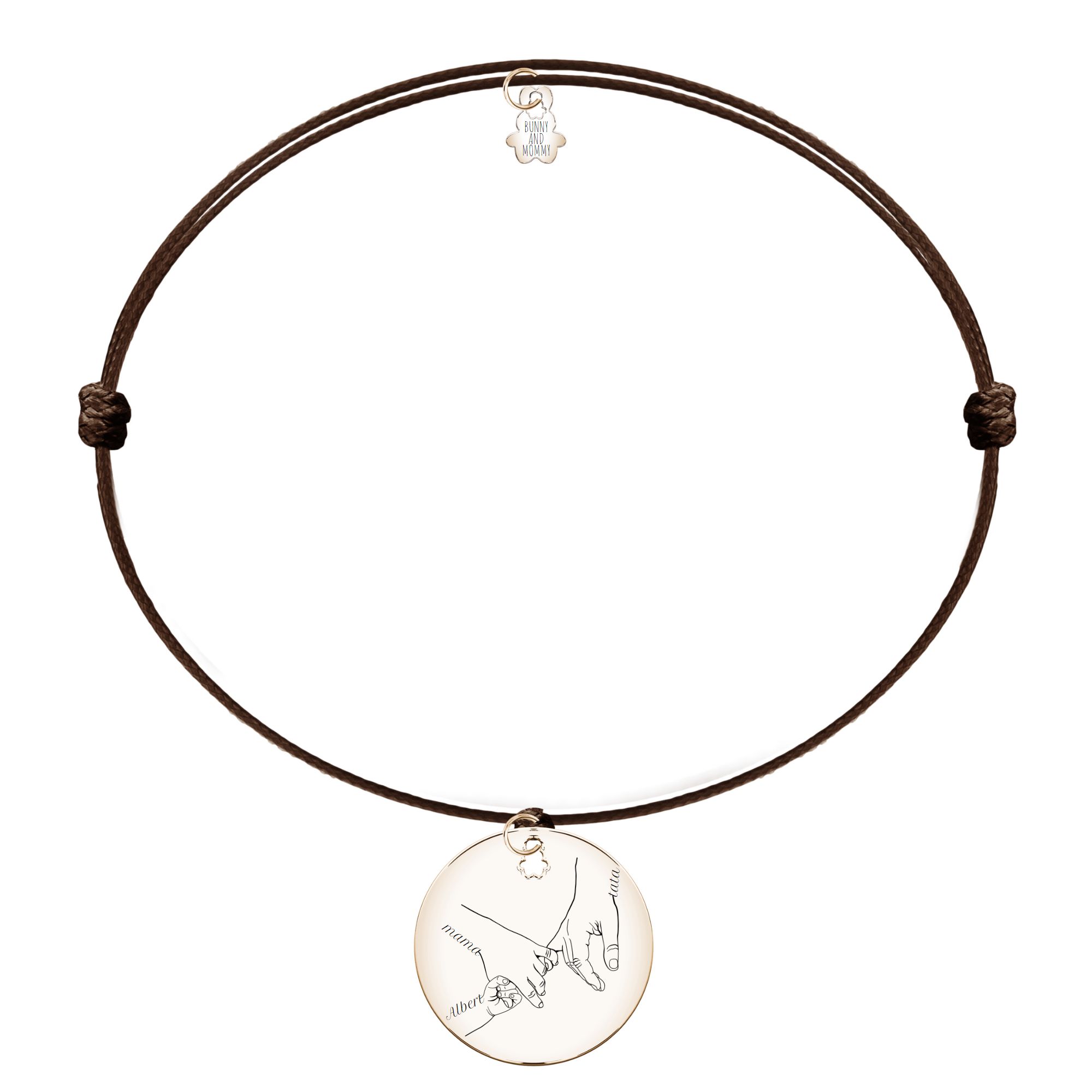 Bransoletka na sznurku z kolekcji #RODZINA z grafiką rodziców trzymających się za ręce z dzieckiem.