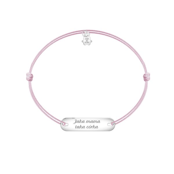 Bransoletka sznurkowa z przylegającą zawieszką longy kid z sentencją jaka mama taka córka z dowolnym grawerem na odwrocie