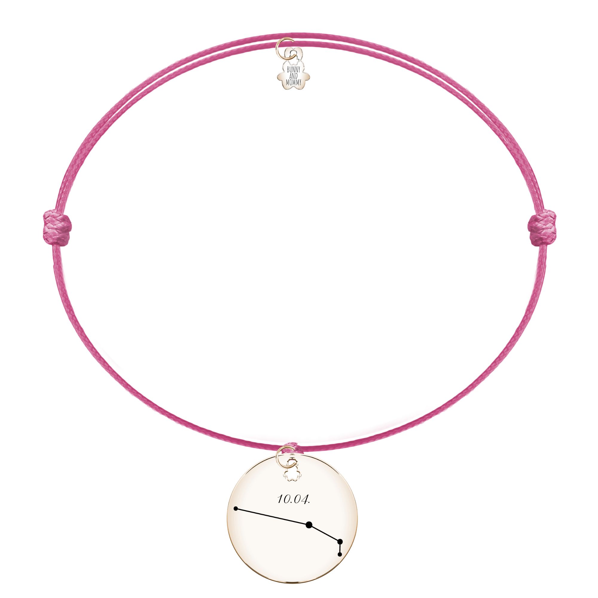 Bransoletka sznurkowa z kolekcji #ZODIAKALNA z grafiką konstelacji zodiakalnej z datą urodzenia. Na odwrocie zawieszki wygrawerujemy dowolną sentencję. Bransoletka doskonale sprawdzi się jako prezent dla bliskiej Ci osoby lub stanie się Twoją piękną ozdobą, zawierającą konstelację gwiazd Twojego lub bliskiej Ci osoby zodiaku.