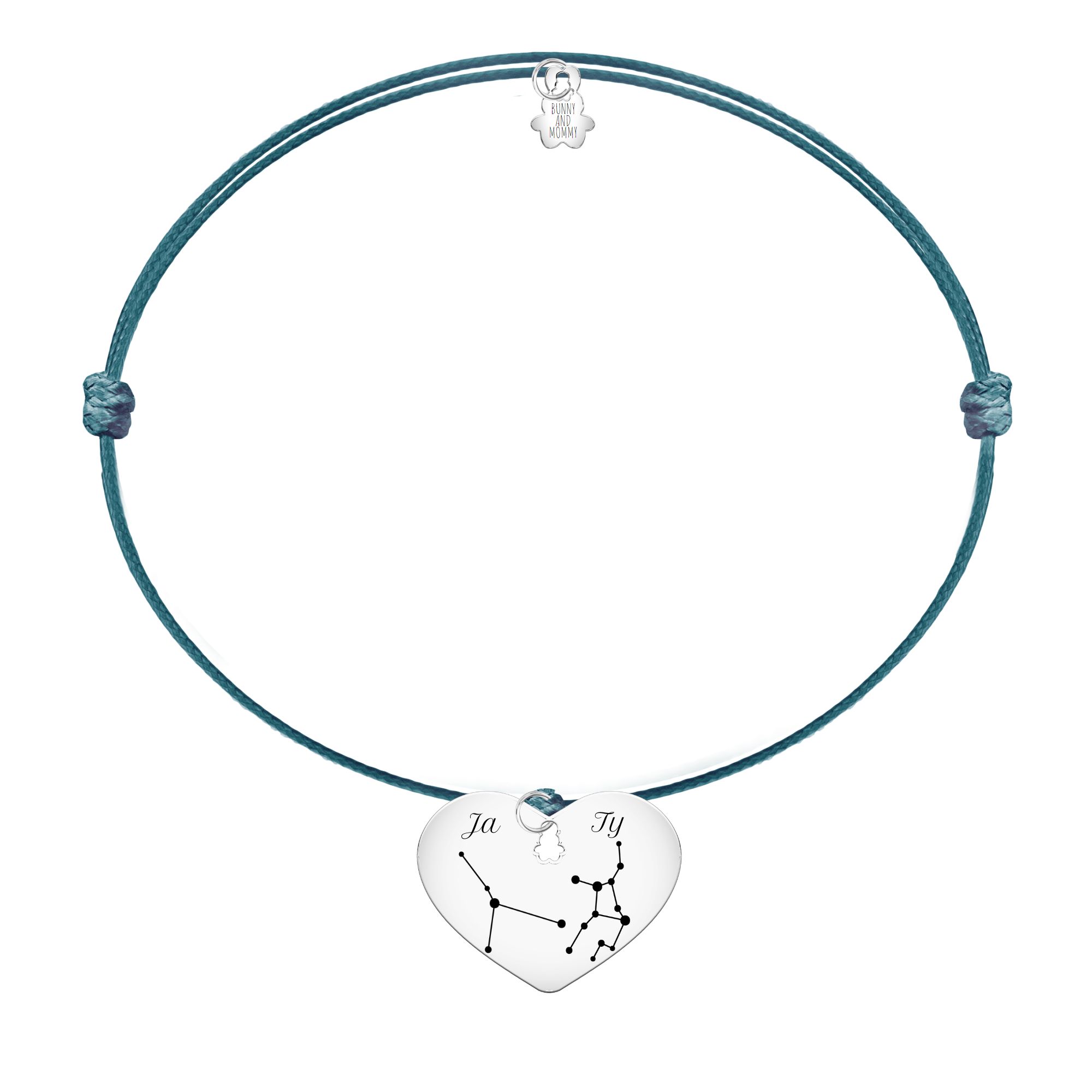 Bransoletka sznurkowa z zawieszką serce Ja i Ty z konstelacjami gwiazd Twojego znaku zodiaku oraz bliskiej Ci osoby