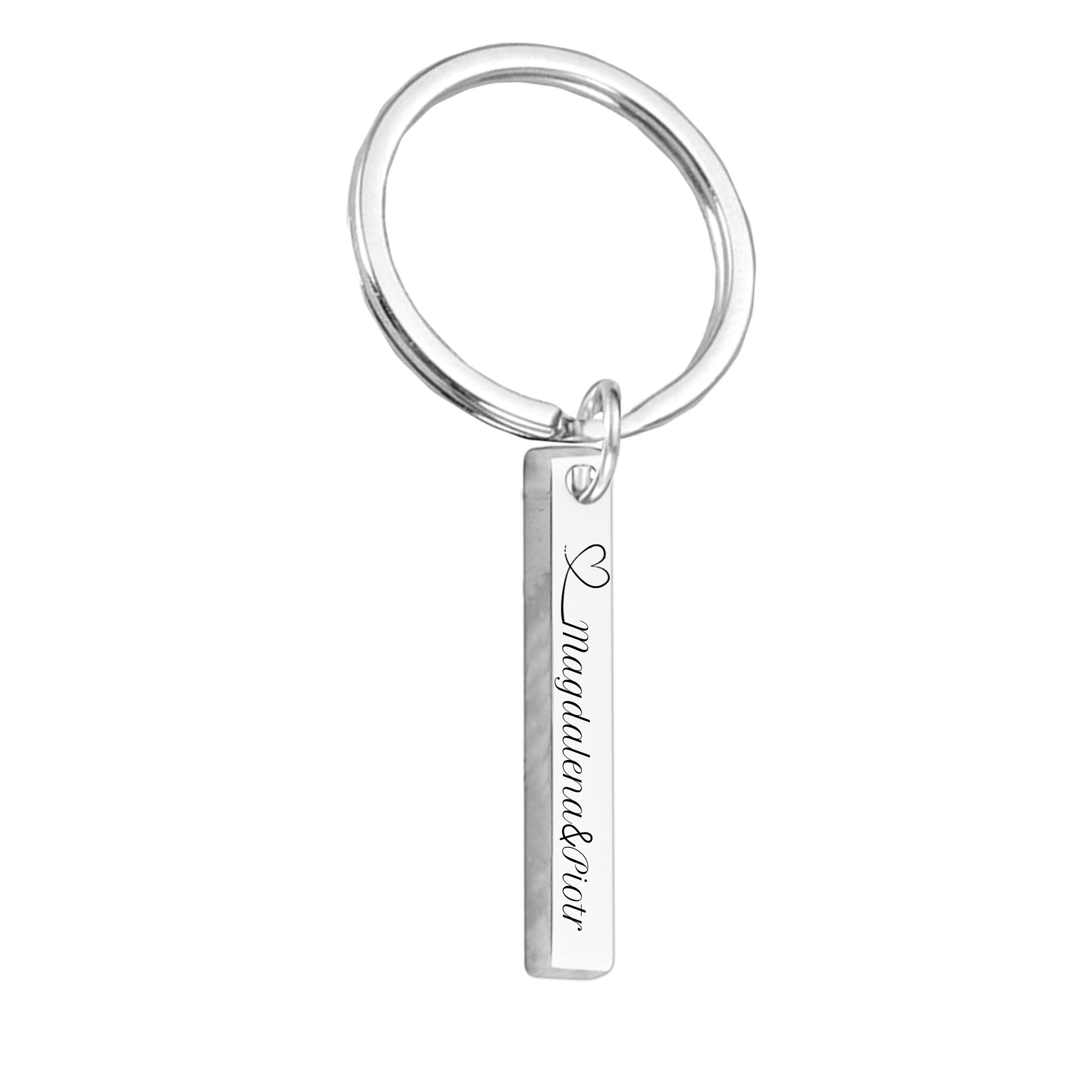 Brelok z podłużną zawieszką 3D z kolekcji #MAMA, na której wygrawerujemy imię, imiona bądź dowolną sentencję symbolizującą Twój powód do dumy Twoje dzieci. Brelok możesz dołączyć do kluczy dzięki czemu swoich bliskich będziesz mieć zawsze przy sobie. Możliwość dodania dowolnego grawera na każdej stronie zawieszki pozwala zamieścić imiona wszystkich Twoich dzieci lub inną, dowolną dedykację, np. życzenia lub gratulacje. Zawieszka umocowana jest na ogniwku, dzięki czemu z łatwością przypniesz ją do kluczy.