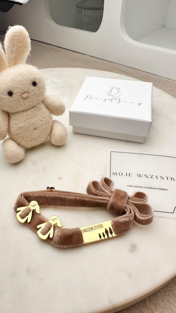 Bransoletka na wstążce aksamitce z motywem #MOJEWSZYSTKO z postaciami Twojej rodziny z zawieszkami przylegającymi w kształcie dziewczynki lub chłopca do wyboru z inicjałem Twoim, Twojego dziecka, lub innej, bliskiej Ci osoby. Bransoletka doskonale sprawdzi się jako prezent dla każdej mamy, córki, babci, siostry, koleżanki, przyjaciółki i każdej osoby ceniącej sobie minimalizm. Pełna personalizacja biżuterii pozwala dobrać odpowiedni rozmiar (także dziecięcy), kolor oraz wersję bransoletki. Bransoletka wykonana z elastycznej wstążki.